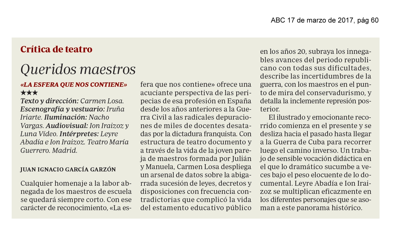 La esfera que nos contiene Texto y dirección Carmen Losa CDN temporada 2016-17